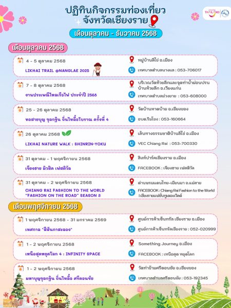ปฏิทินท่องเที่ยว จังหวัดเชียงราย [ เดือนตุลาคม – ธันวาคม 2568 ]