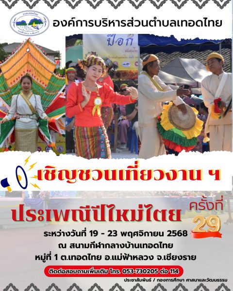 อเชิญชวนเที่ยวงานฯ ประเพณีปีใหม่ไตย (ไทยใหญ่) ประจำปี 2568 ครั้งที่ 29