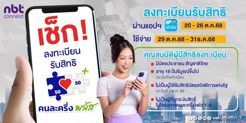 - ลงทะเบียนผ่านแอปฯ เป๋าตัง 20 – 26 ต.ค.68