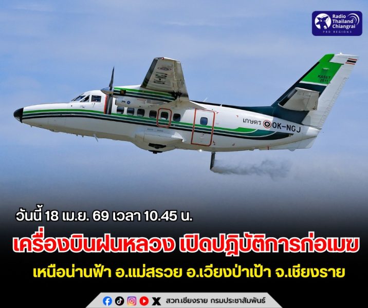 กรมฝนหลวงฯ เปิดแผนรวมพิกัด “บรรเทาฝุ่น-ทำฝน” – เชียงใหม่ เชียงราย พะเยา ลำปาง แพร่ บึงกาฬ สกลนคร จันทบุรี ตราด สระแก้ว ประจวบฯ วันที่ 18 เมษายน 2569
